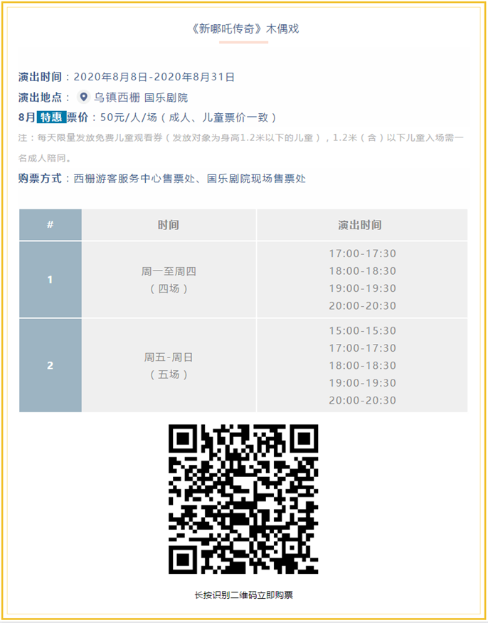 這個(gè)夏天,烏鎮(zhèn)依托戲劇節(jié)資源,推出木偶戲《新哪吒傳奇》,在傳統(tǒng)非遺文化中,體會叱咤風(fēng)云的哪吒。
