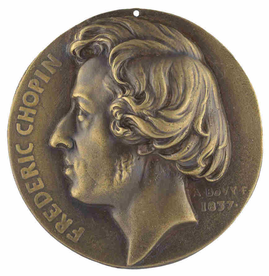 蕭邦側(cè)面像紀(jì)念章,讓·弗朗索瓦·安托萬·博維,十九世紀(jì)下半葉,銅質(zhì),10.3×10.5×1.7cm,收藏機(jī)構(gòu):波蘭蕭邦研究院、蕭邦博物館