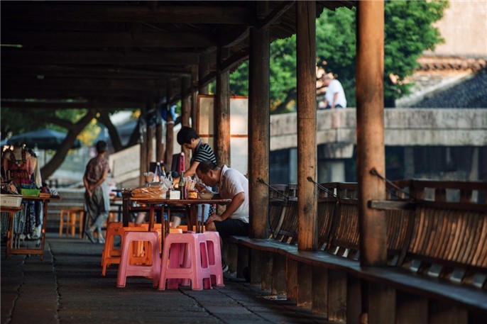 烏鎮(zhèn)人的夏天,從來不是枯燥的。夏天一到,就是“乘涼夜飯”的季節(jié)了。巷子里、老街旁,左鄰右舍聚在一塊,分享美食。涼風(fēng)習(xí)習(xí),搖著蒲扇,驅(qū)走一整個夏天的燥熱。